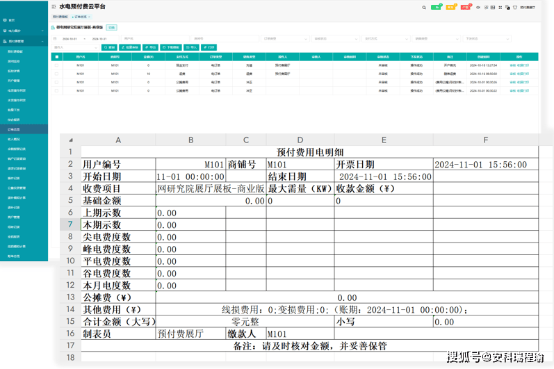 支持查询自定义时间范围内的账单数据,包括用电量、费用、充值、使用金额等;支持自定义打印模板