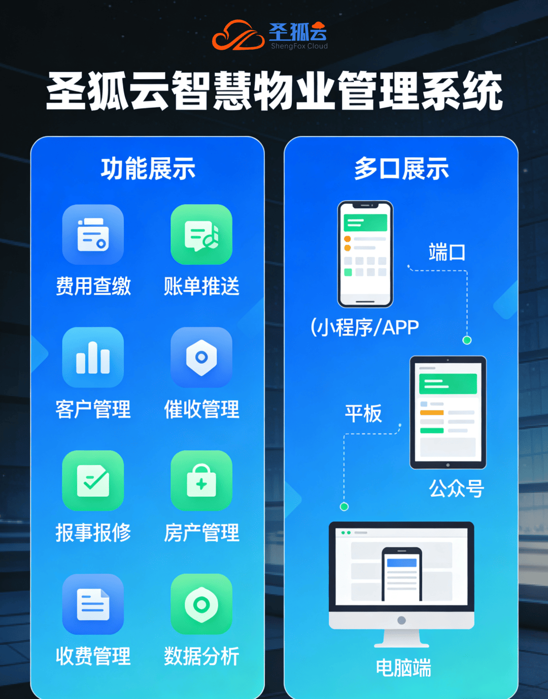 现在对接圣狐云,可领取免费演示账号,实地测试智能催缴功能,切身感受“收缴率飙升”的高效体验,让物业收费更轻松、服务更省心!